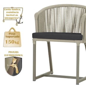 Descubra a Elegancia e Durabilidade da Cadeira Noronha. Combinando estilo e resistencia, esta cadeira traz o melhor do design contemporaneo em aluminio com micro pintura e acabamento em corda nautica. O estofado impermeavel completa o conforto e a funcionalidade, tornando-a ideal para ambientes externos e internos. Qualidade e elegancia que transformam qualquer espaco. Adicione um toque de sofisticacao e conforto ao seu espaco com a cadeira Noronha.