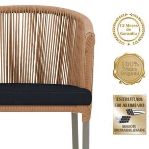Descubra a Elegancia e Durabilidade da Cadeira Noronha. Combinando estilo e resistencia, esta cadeira traz o melhor do design contemporaneo em aluminio com micro pintura e acabamento em corda nautica. O estofado impermeavel completa o conforto e a funcionalidade, tornando-a ideal para ambientes externos e internos. Qualidade e elegancia que transformam qualquer espaco. Adicione um toque de sofisticacao e conforto ao seu espaco com a cadeira Noronha.