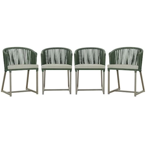 4 Cadeiras De Jantar Noronha Fendi Corda Náutica E3 Trama Verde