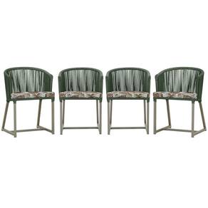 4 Cadeiras De Jantar Noronha Fendi Corda Náutica E6 Trama Verde