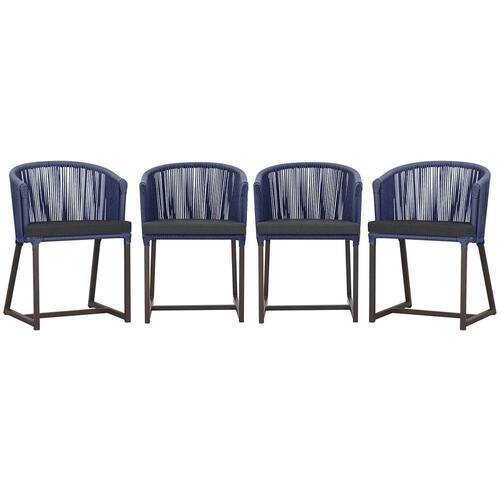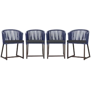 4 Cadeiras De Jantar Noronha Marrom Corda Náutica E11 Trama Azul