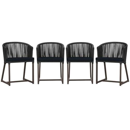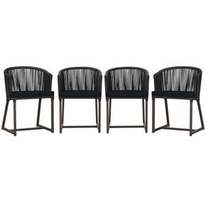 4 Cadeiras De Jantar Noronha Marrom Corda Náutica E12 Trama Preto