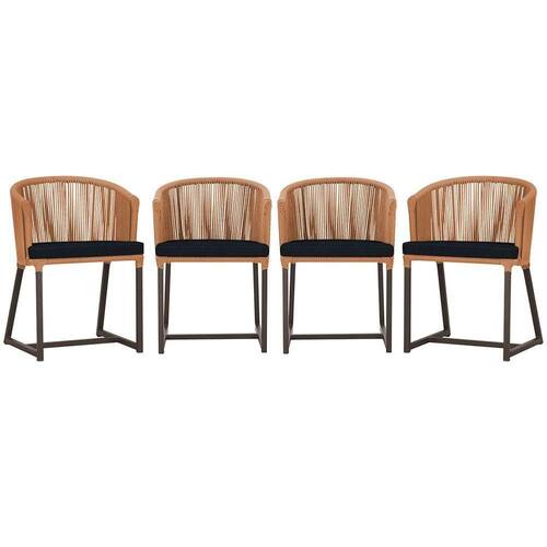 4 Cadeiras De Jantar Noronha Marrom Corda Náutica E12 Trama Terra Cota