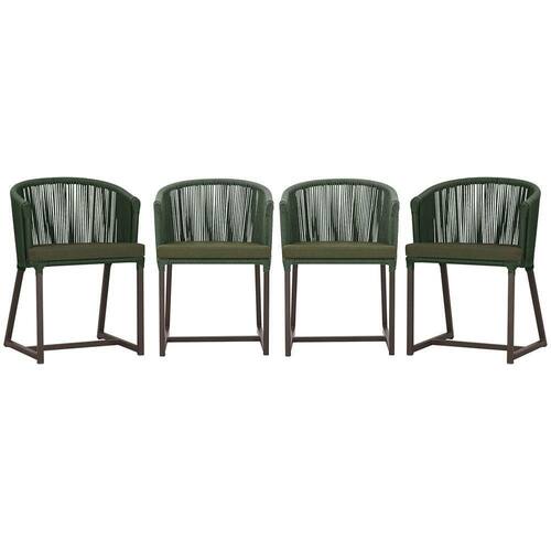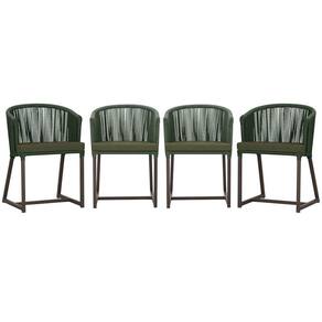 4 Cadeiras De Jantar Noronha Marrom Corda Náutica E13 Trama Verde