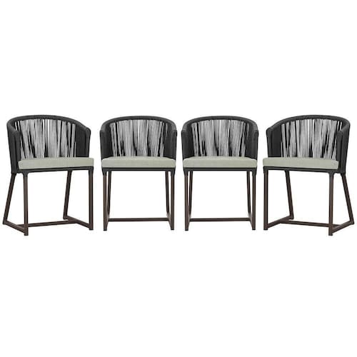 4 Cadeiras De Jantar Noronha Marrom Corda Náutica E3 Trama Preto