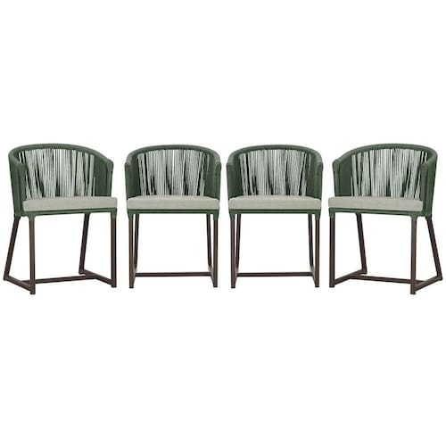 4 Cadeiras De Jantar Noronha Marrom Corda Náutica E3 Trama Verde
