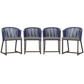 4 Cadeiras De Jantar Noronha Marrom Corda Náutica E8 Trama Azul