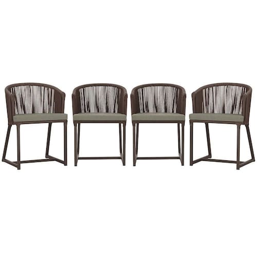 4 Cadeiras De Jantar Noronha Marrom Corda Náutica E8 Trama Marrom