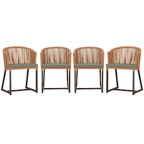4 Cadeiras De Jantar Noronha Marrom Corda Náutica E8 Trama Terra Cota