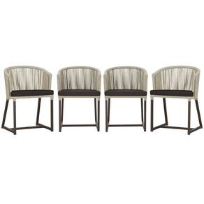4 Cadeiras De Jantar Noronha Marrom Corda Náutica E9 Trama Rami