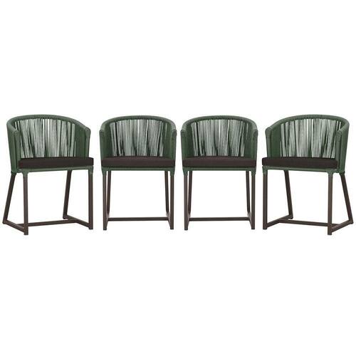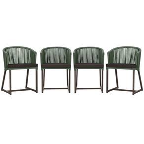4 Cadeiras De Jantar Noronha Marrom Corda Náutica E9 Trama Verde