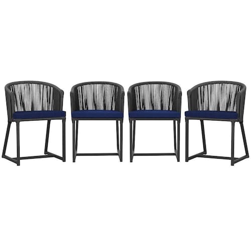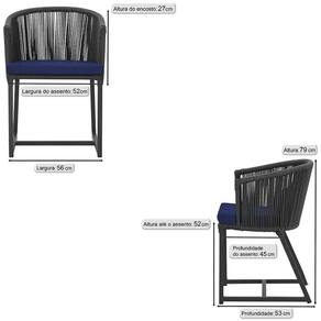 4 Cadeiras De Jantar Noronha Preta Corda Náutica E10 Trama Preto