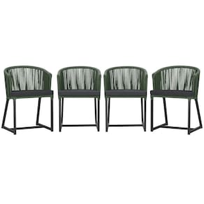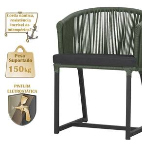 4 Cadeiras De Jantar Noronha Preta Corda Náutica E11 Trama Verde