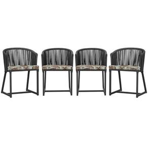 4 Cadeiras De Jantar Noronha Preta Corda Náutica E6 Trama Preto