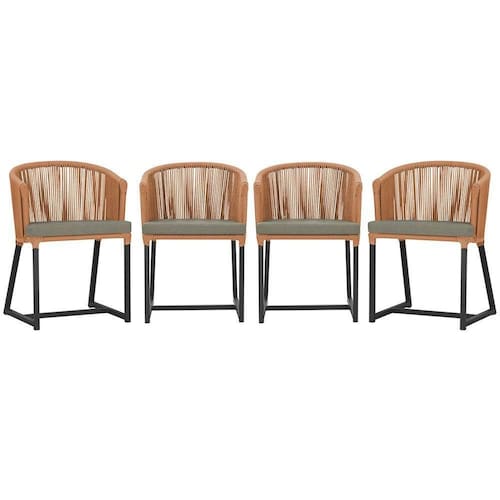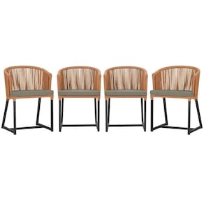 4 Cadeiras De Jantar Noronha Preta Corda Náutica E8 Trama Terra Cota