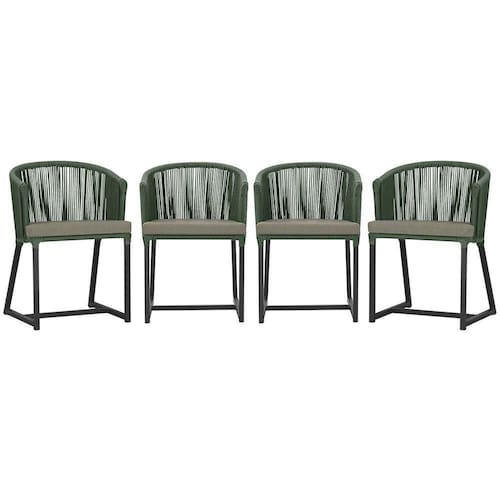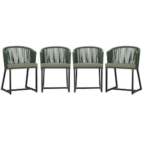 4 Cadeiras De Jantar Noronha Preta Corda Náutica E8 Trama Verde