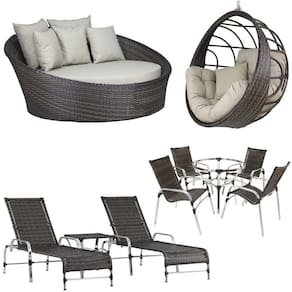 Kit 4 Cadeiras e Mesa, 2 Espreguicadeiras, 1 Balanco Ninho e 1 Chaise em Aluminio Trama