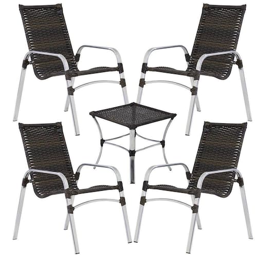 4 Cadeiras E Mesa área Emily Alumínio Piscina, Jardim Pedra Ferro
