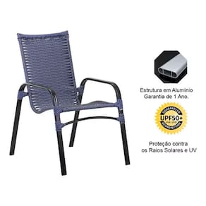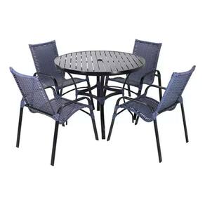 4 Cadeiras E Mesa Tampo Ripado Em Alumínio Pedra Ferro ,