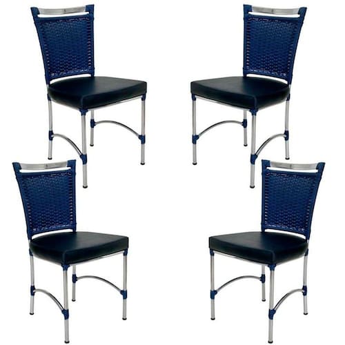 4 Cadeiras Em Alumínio E Fibra Sintética Jk Cozinha Edícula Azul Dark E Nautico Preto