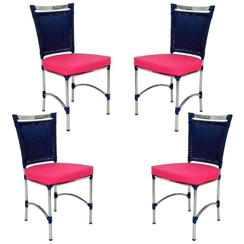 4 Cadeiras Em Alumínio E Fibra Sintética Jk Cozinha Edícula Azul Dark E Pink