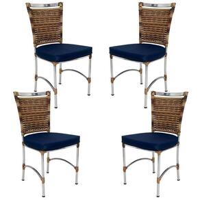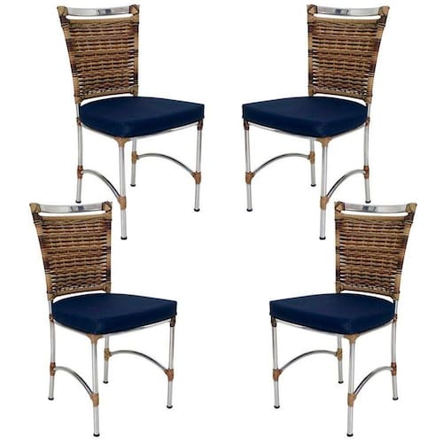 4 Cadeiras Em Alumínio E Fibra Sintética Jk Cozinha Edícula Cappuccino E Lisato Marinho