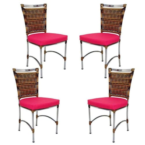 4 Cadeiras Em Alumínio E Fibra Sintética Jk Cozinha Edícula Cappuccino E Pink