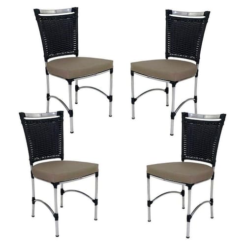 4 Cadeiras Em Alumínio E Fibra Sintética Jk Cozinha Edícula Preto E Fendi