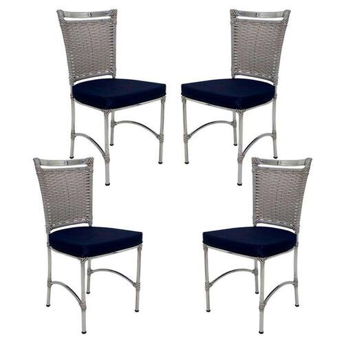 4 Cadeiras em Alumínio e Fibra Sintética JK Cozinha Edícula - Azul Marinho