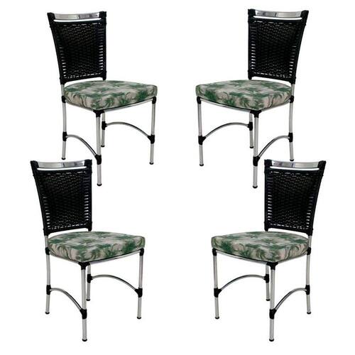 4 Cadeiras em Alumínio e Fibra Sintética JK Cozinha Edícula - Verde Cinza