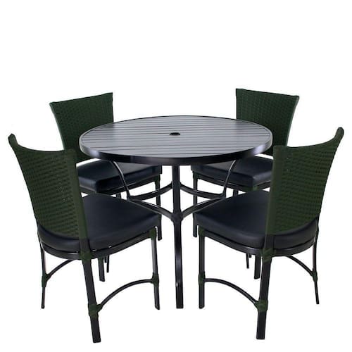 - Mesa Redonda com Tampo Ripado em Alumínio, e Furo Central para Ombrelone.