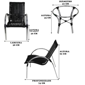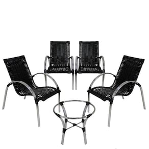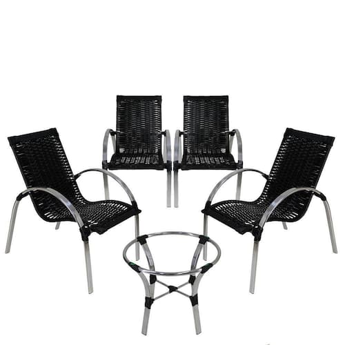 4 Cadeiras Garden Em Mesa De Centro Em Alumínio Preta - Preto
