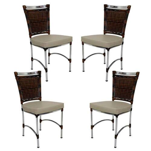 4 Cadeiras Jk Em Alumínio E Fibra Sintética Cozinha Edícula Argila E Courino Náutico Bege Caracteristicas: Pecas produzidas em aluminio polido e revestidas em fibra sintetica com protecao UV. Nossos produtos sao artesanais e podem ocorrer variacoes na medida de ate 2cm. As cores dos produtos podem variar de acordo com o ambiente e com a iluminacao em que as fotos foram tiradas. Estofado em couro nautico da kelsons ou tecido acquablock da karsten. Suporta ate 170 kg