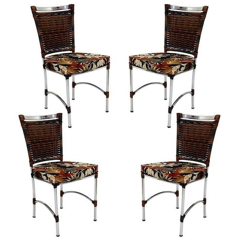 4 Cadeiras Jk Em Alumínio E Fibra Sintética Cozinha Edícula Argila E Rivieira Marrom Caracteristicas: Pecas produzidas em aluminio polido e revestidas em fibra sintetica com protecao UV. Nossos produtos sao artesanais e podem ocorrer variacoes na medida de ate 2cm. As cores dos produtos podem variar de acordo com o ambiente e com a iluminacao em que as fotos foram tiradas. Estofado em couro nautico da kelsons ou tecido acquablock da karsten. Suporta ate 170 kg