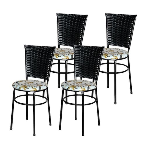4 Cadeiras Preta Para Mesa Hawai Preta Assento Floral Cor:floral Orquídea