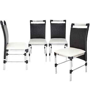 4 Cadeiras Veneza Fibra Sintética Preto Alumínio Com Assento Estofado Branco