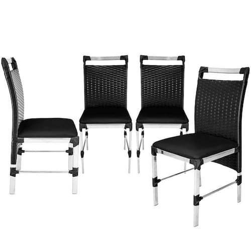 4 Cadeiras Veneza Fibra Sintética Preto Alumínio Polido Com Assento Estofado