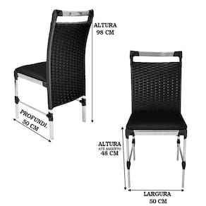 4 Cadeiras Veneza Fibra Sintética Cor Preto Alumínio Polido Com Assento Estofado