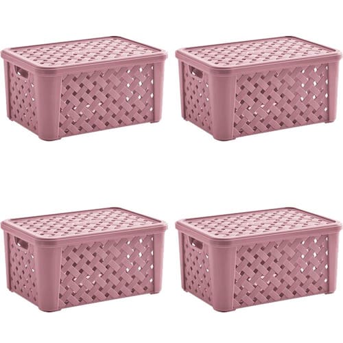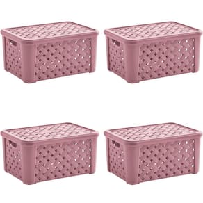 KIT 4 CAIXAS ORGANIZADORA RATTAN 24x17x12 ROSE PARAMOUNT