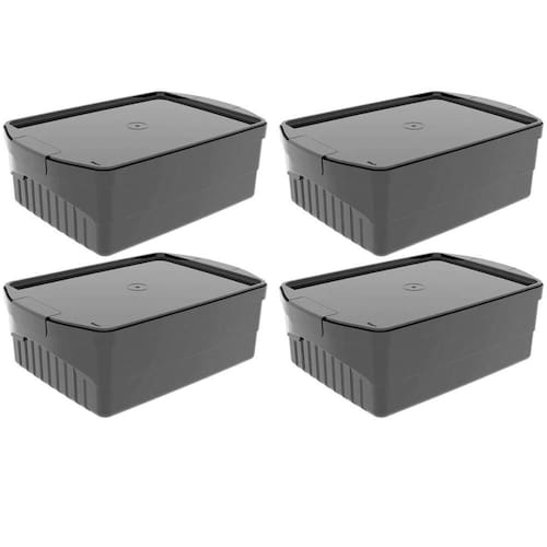 4 Caixas Organizadora 8L Preta Crippa com Tampa e Travas Laterais Closet Escritório