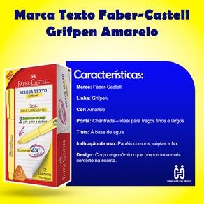 MARCA TEXTO FABER CASTELL AMARELO NEON - KIT COM 4 UNIDADES O Marca Texto Pilot é indicado para destacar informações em textos impressos ou escritos à mão, auxiliando na organização e na leitura de conteúdos. Possui tinta neon na cor amarela, que garante excelente visibilidade sem comprometer a legibilidade do texto. A embalagem contém 4 unidades , sendo uma opção prática para uso frequente em atividades de leitura, estudos e organização de materiais. CARACTERÍSTICAS DO PRODUTO