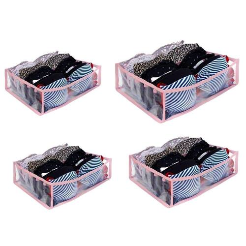 4 quatro Colmeia Organizadora De Sutiã Multiuso 6 seis Divisórias 32x10x22 Transparente Com Viés Rosa Com praticidade e organização, tamanho certo, arrume seu guarda-roupa com colmeia de 6 divisórias e ganhe mais tempo para você Organizador em Colmeia Cristal 6 seis nichos permite melhor visualização e organização de suas roupas e peças íntimas, facilitando o seu dia a dia. Possui boa sustentação para acomodar as roupas, costuras reforçadas o que garante maior durabilidade. É confeccionado em plástico PVC, material resistente e transparente. Ideal para sutiã com bojo, chinelos, rasteirinhas, camisetas, blusinhas, roupa de academia, toalhinhas, roupinhas de bebê, meias, calcinhas, dentre outros. Com nossa colmeia organizadora, suas roupas estarão sempre no lugar certo e fáceis de encontrar. Organizador de sutiã cristal com rosa Tamanho: 32x21x10 6 divisórias Marca: VB Home Material resistente: PVC cristal transparente de alta qualidade Limpeza: Limpar tudo com pano úmido. Não utilizar produtos químico. Excelente também para ser em organização de espaço por Personal Organizer. Marca: Não Informado Ean: 7908788501081