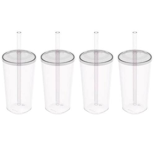 4 Copos com Tampa e Canudo 500ml Crippa Transparente Plástico Água Suco Bebidas