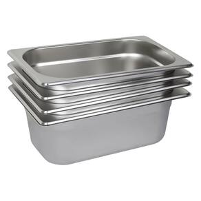 Kit com 4 cubas GN 1/4 de 65mm em aço inox, ideal para buffets modernos que prezam por visual elegante, padronização e praticidade na hora de servir molhos, frios, saladas pequenas ou sobremesas. Compactas, leves e com profundidade rasa, essas cubas otimizam o layout da sua bancada e trazem eficiência ao serviço. Produzidas em aço inox 0,7mm, são fáceis de limpar, empilháveis e compatíveis com equipamentos padrão GN 1/1.