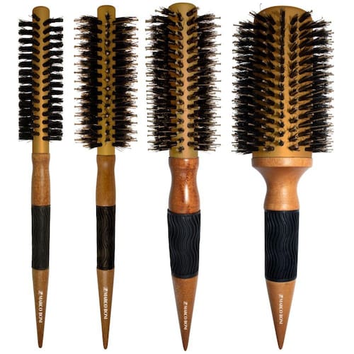 Ideal para alisar cabelos ondulados e cacheados. Cabo Pontiagudo separador de mechas, emborrachado. com Cerdas de javali e nylon com dupla altura permitem que a escova deslize mais facilmente pelos fios.