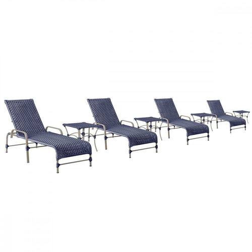 4 Espreguiçadeiras Catar 4 Mesas Garden Corda Náutica Trama Azul