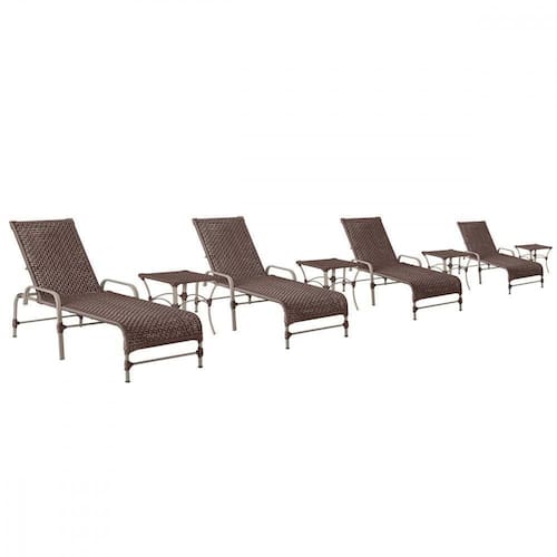 4 Espreguiçadeiras Catar 4 Mesas Garden Corda Náutica Trama Marrom