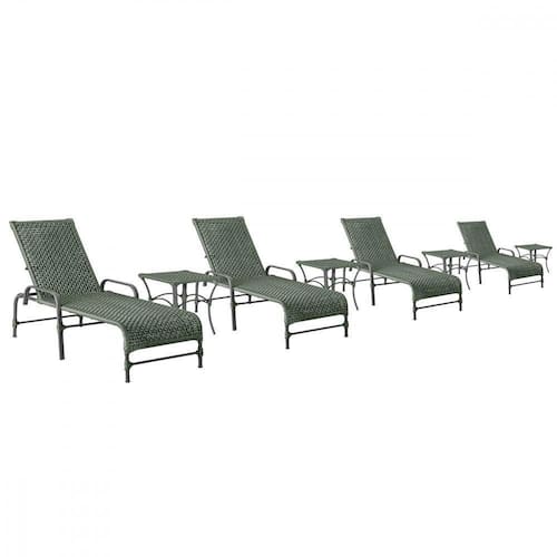 4 Espreguiçadeiras Catar 4 Mesas Garden Corda Náutica Trama Verde