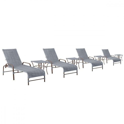 4 Espreguiçadeiras Catar E 4 Mesas Garden Cor Marrom Trama Prata