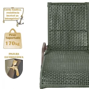O encosto reclinavel permite ajuste perfeito para seu conforto, enquanto a corda nautica trancada proporciona um toque elegante e ergonomico.